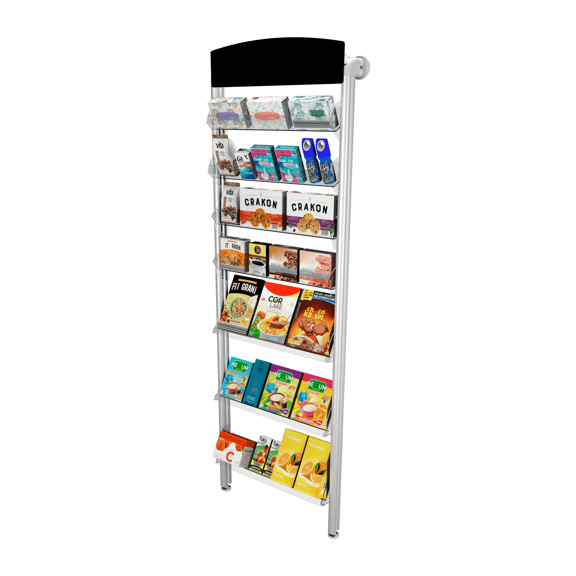 Este módulo incluye 7 entrepaños diseñados para maximizar el espacio de exhibición. Fabricado con PETG de alta resistencia y una estructura en aluminio anodizado, asegura durabilidad y organización eficiente. Sus dimensiones son hasta 80 cm de ancho, 200 cm de alto y 36 cm de profundidad, con una capacidad de almacenamiento de 0.5 m³, ideal para farmacias que manejan gran variedad de productos​.