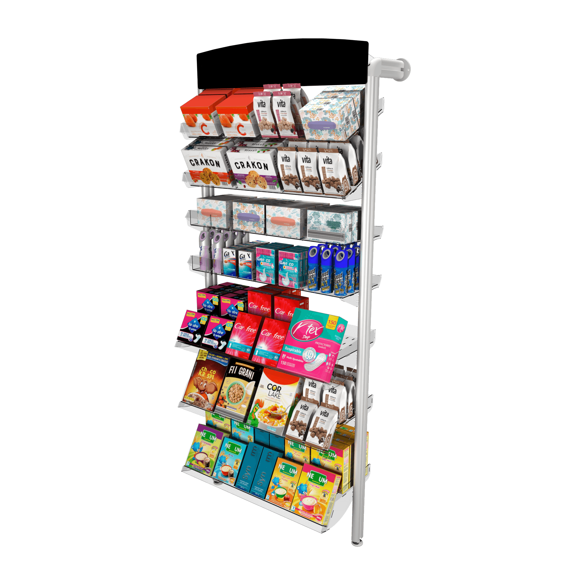 - Capacidad de exhibición de hasta 56 referencias, con repeticiones.